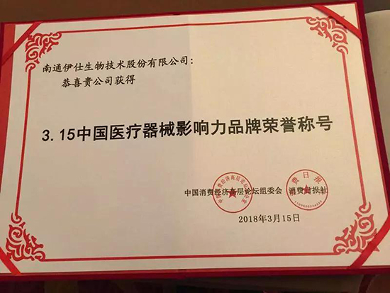 厲害了!伊仕生物榮獲“3.15中國醫(yī)療器械影響力品牌”稱號