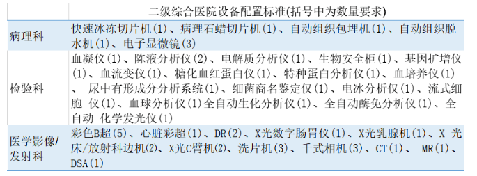 病理、檢驗、影像三個科室的設備配置方面,病理科設備配置數量、種類均明顯少于檢驗、影像科室。