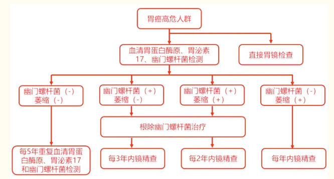 2014年4月,我國提出《中囯早期胃癌篩查及內鏡診治共識意見》,共識推薦聯合血清學檢查胃蛋白酶原和幽門桿菌對胃癌高危人群進行檢測的路徑。