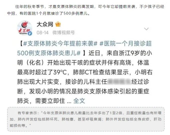 根據復旦兒科醫院數據顯示:近期兒童發熱主要集中在甲流、支原體等病原微生物感染。其中,甲流單日檢出達100多例,較9月1日前增長了30%。周末就診高峰期,單日掛水人次可達900人。